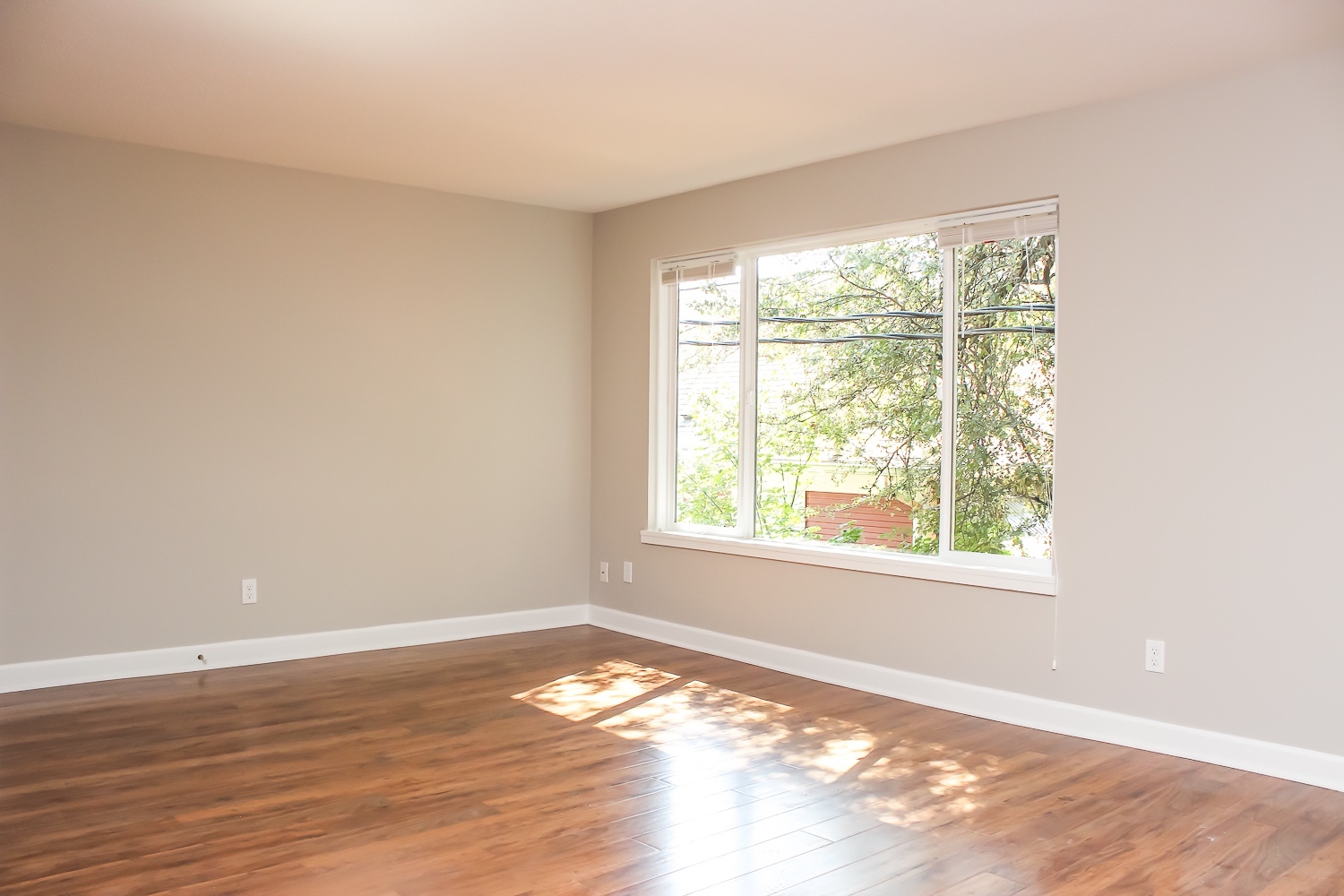 This upstairs home is approximately 785 square feet. Rent is $1,649 per month, plus each tenant pays $50/month as a water/sewer/utility supplement. Tenants are responsible for their own electric bills (lighting and heating) and any phone or Internet desired. Landlord pays for trash/recycling and water/sewer.