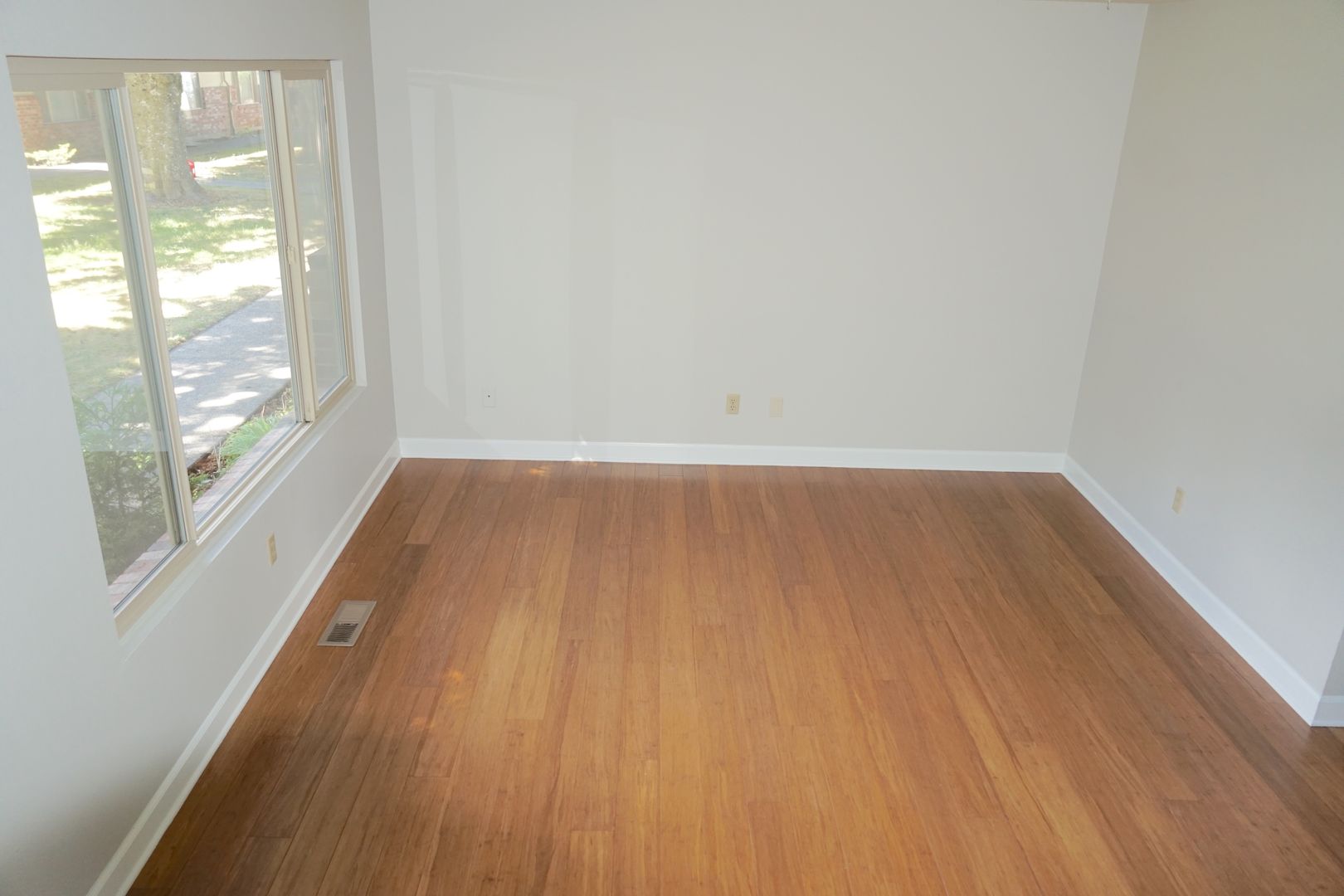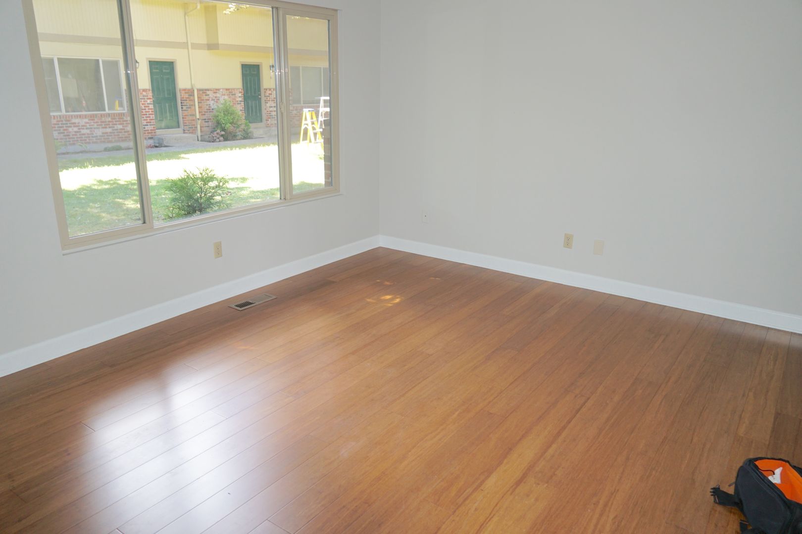 --Hardwood flooring in the kitchen and living areas and carpet in the bedrooms.