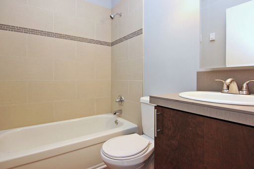 --Modern tile, mirror, lighting and fixtures in the bathroom